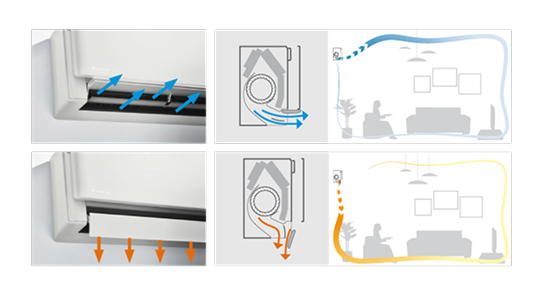 Coanda-ilmiön avulla ilmalämpöpumpun tuottama ilmavirtaus optimoidaan miellyttäväksi. Erityisesti suunniteltujen ohjainten avulla ilmavirta suunnataan tarkasti ja lämpö jakautuu tasaisemmin koko huoneessa.
